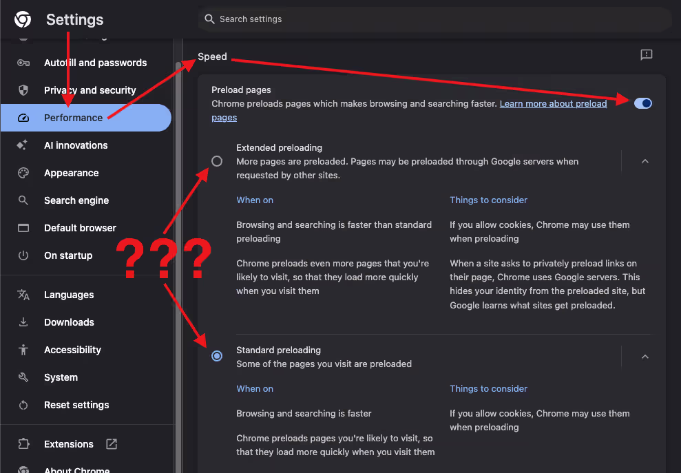- Speculation Rules: Do not help the current page at all, but can make transitions to the next page almost instantaneous. Great for preloading pages that the user will likely visit next. Fairly easy to setup and use, though choosing which URLs to include is at best guess-work, so can result in wasted resources.